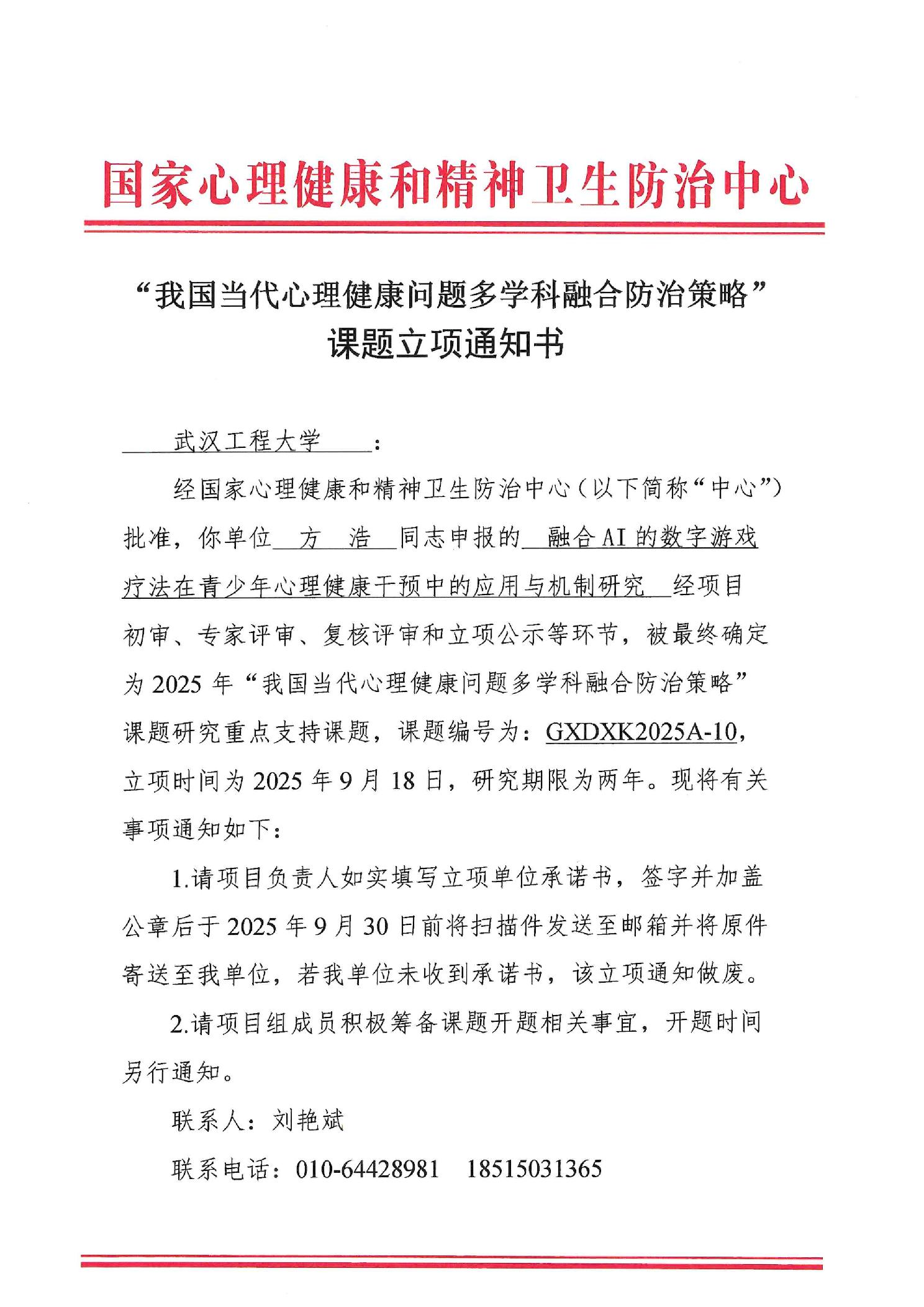 青少年心理健康直接调控着其心理社会适应能力的发展,影响其认知功能、情绪调节、社会交往的健全水平。此次获批的课题聚焦“人工智能”与“数字游戏疗法”两大新兴技术,旨在探索融合数字技术的新型心理干预疗法,挖掘并强化学校特色学科的核心竞争力与独特价值,为我国的心理健康问题防治策略与多学科融合模式提供理论支撑与实践范式。