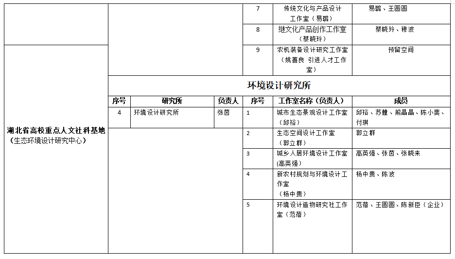 湖北省高校重点人文社科基地(生态环境设计研究中心)组织机构设置