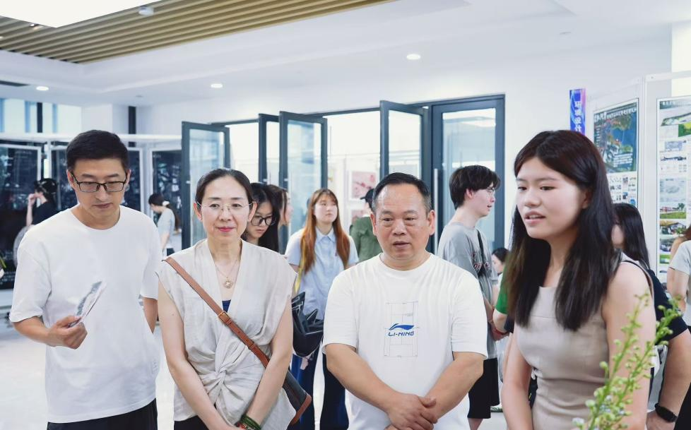 这场展览不仅是同学们学习成果的展示,更是他们艺术交流与思想碰撞的平台。展览中观展人在作品前驻足欣赏,作品组创同学地向嘉宾介绍自己的作品,分享创作背后的故事,整个现场气氛热烈。